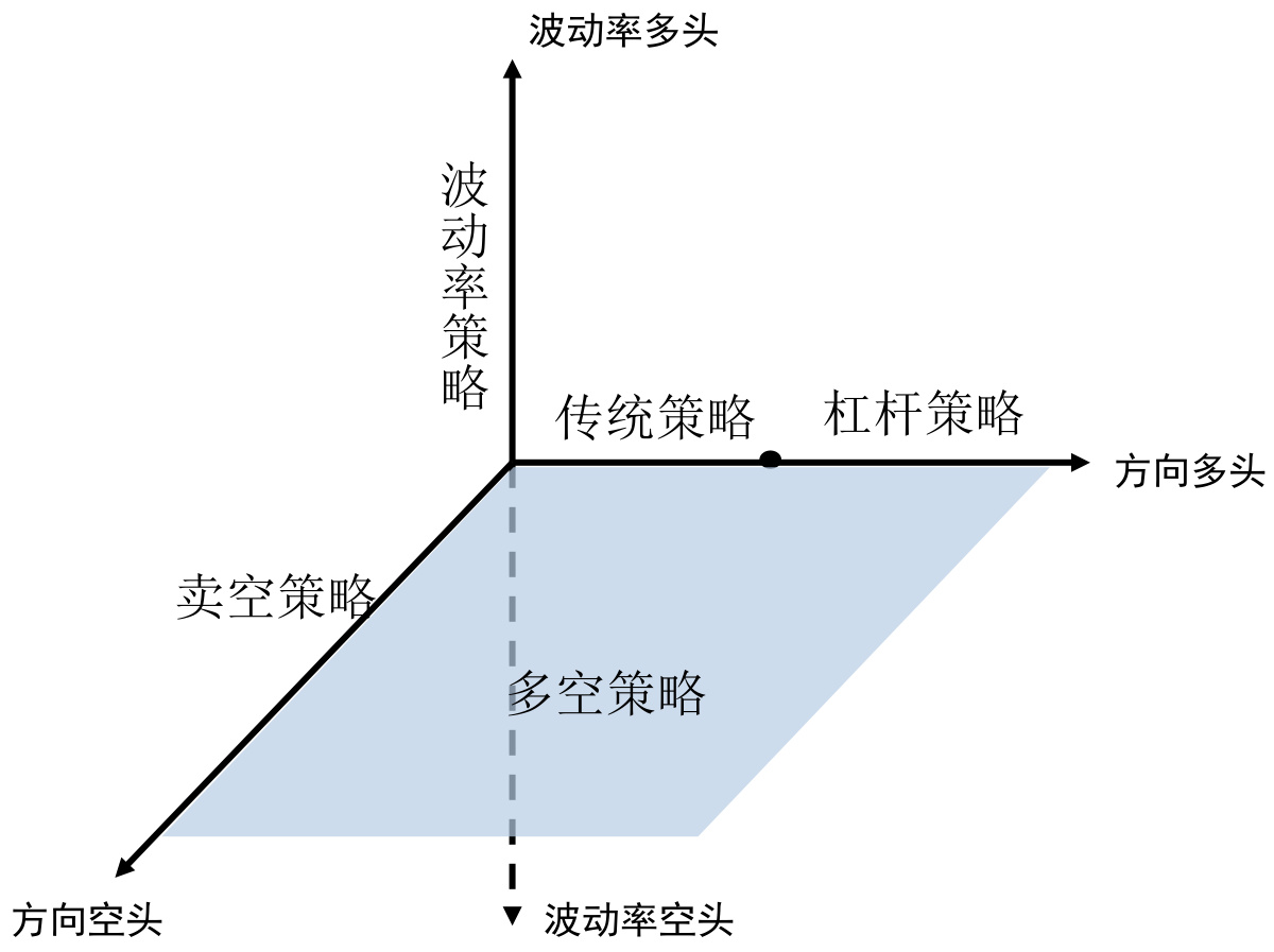 - 市场出现多空对冲、杠杆及波动率等多元投资策略,形成投资策略空间立体化发展。