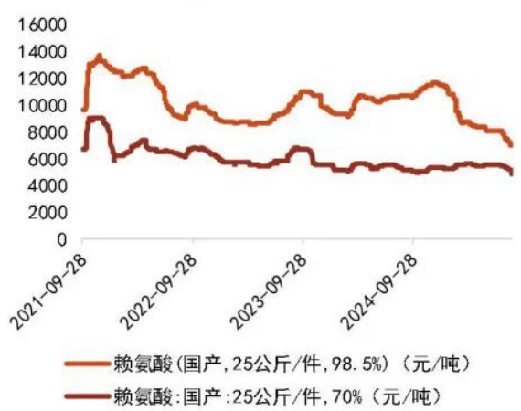 - 图5氨基酸价格曲线普遍向下,反映过去三年价格从高位开始下滑,市场供应端压力和需求调整。