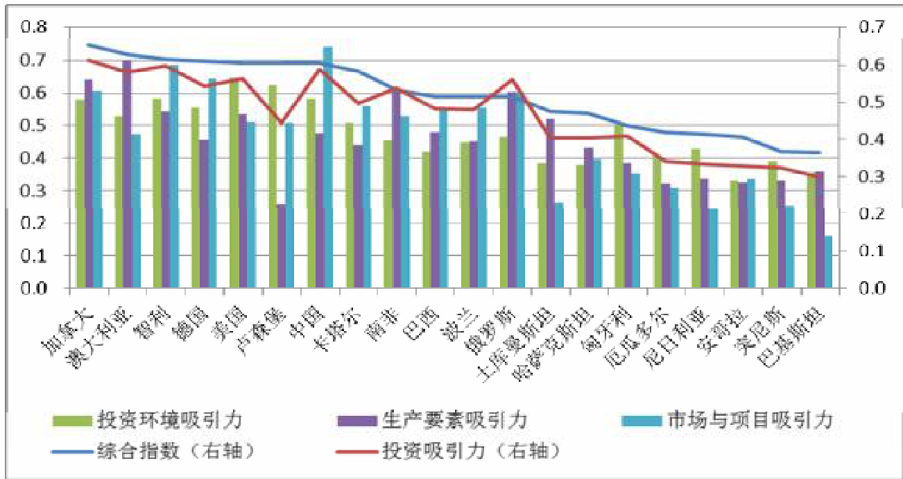 - 20个国家样本中,加拿大、澳大利亚、智利、德国、美国排名前五。