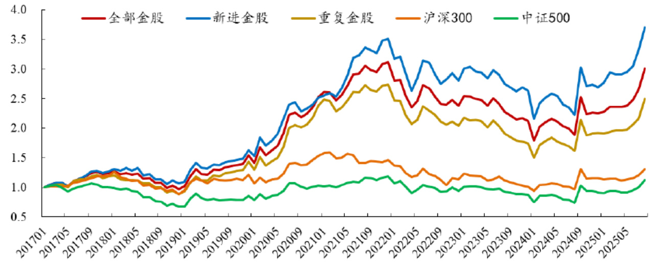 - 2025年以来,新进金股累计收益37.9%,远超重复金股30.2%。