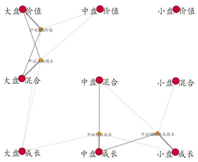 - 通过计算待测指数与九个风格箱基准指数的收益率相关系数,实现在市值和风格上的精准归类。