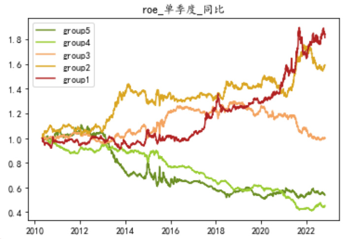 图1:单季度ROE同比超额收益,显示最高因子组长期领先