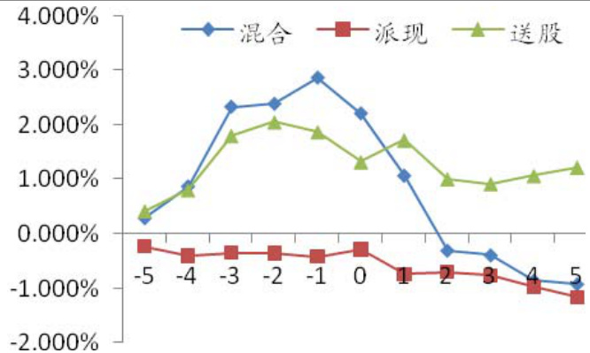 - 6月股权登记日前后异常收益变化显示混合和送股方案明显正收益。