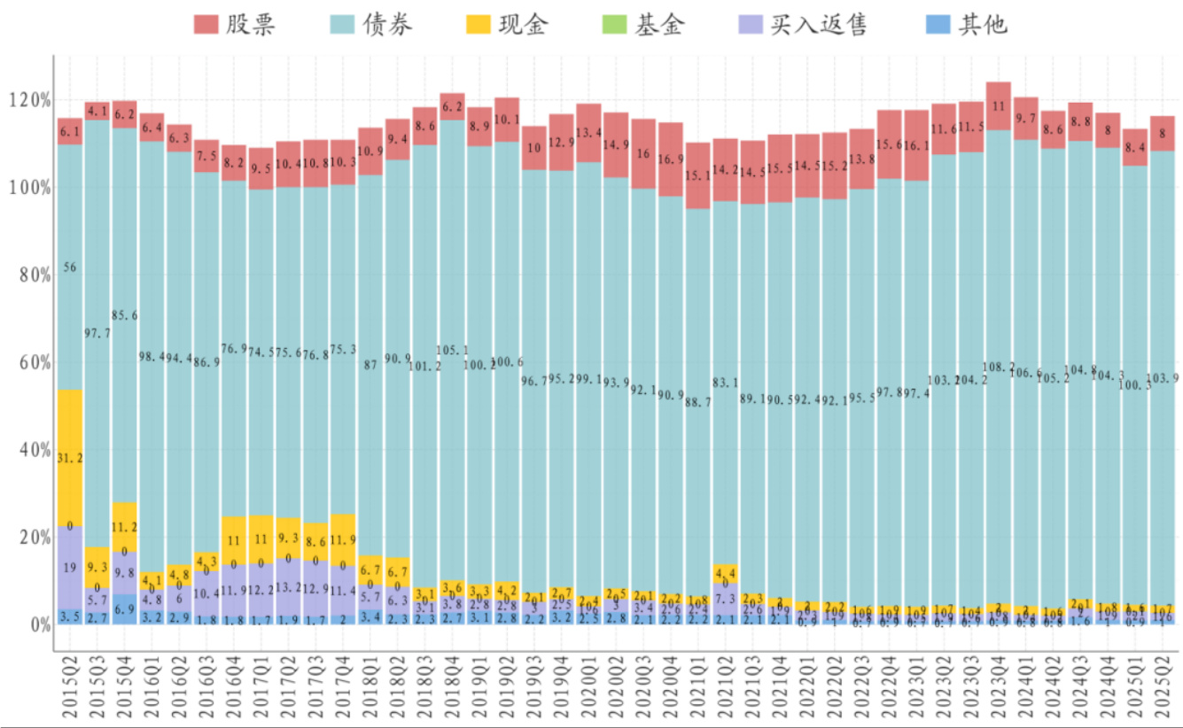 - 股票仓位降至8.01%,债券仓位增至103.89%。