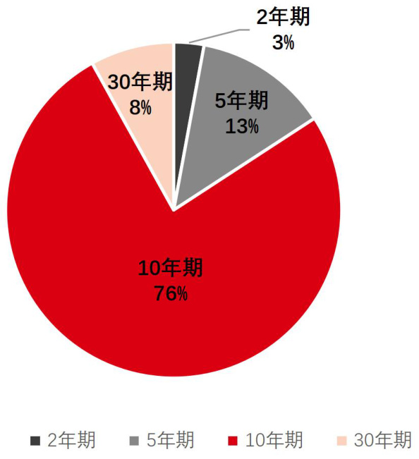 - 美国国债期权市场成熟,主要流通2年、5年、10年和30年期权,其中10年期持仓占比高达76%。