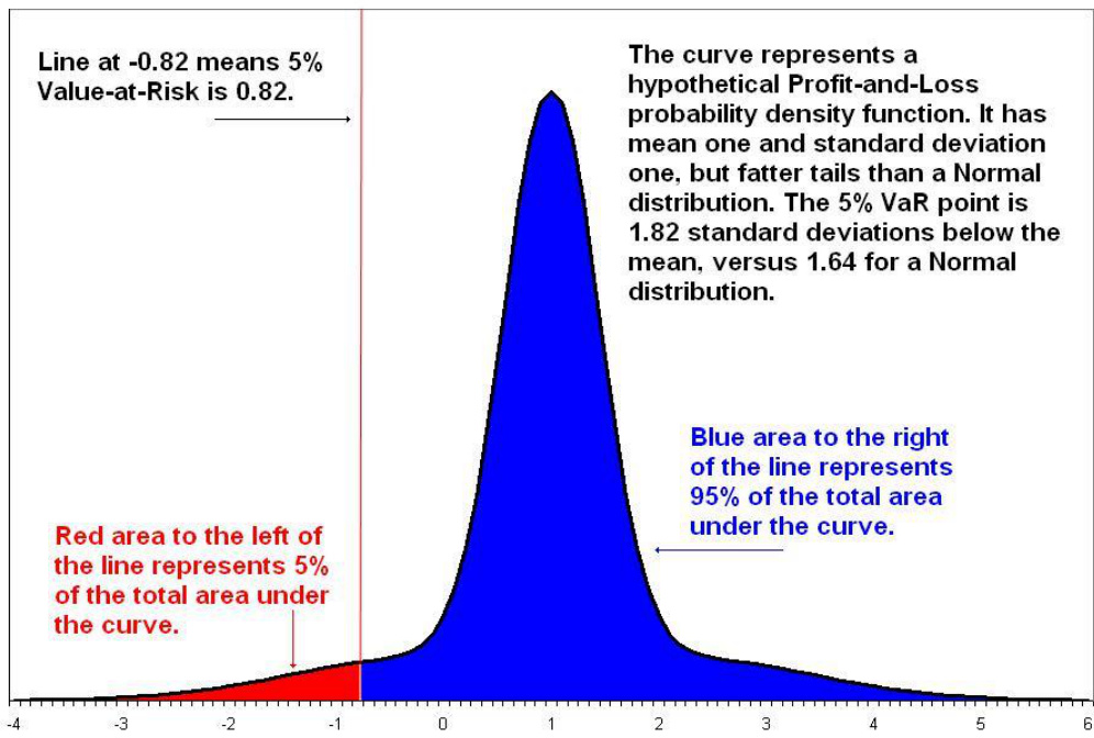 解释VaR计算原理,图中红蓝区域区分亏损超额概率,直观展示极端风险测量,是风险管理模型的核心图示。[page::11]