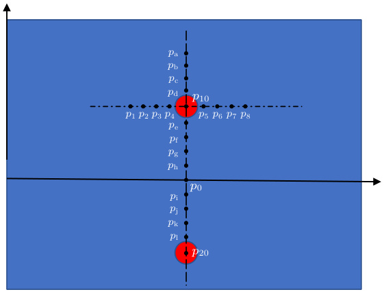 - 监测点设定:泡内中心两点($p{10}$,$p_{20}$)及泡周围沿声压激励方向$8$个点和垂直方向$12$个点(间距$10\ \mu m$)分布,对不同位置压强变化采样监测(图3示意)。