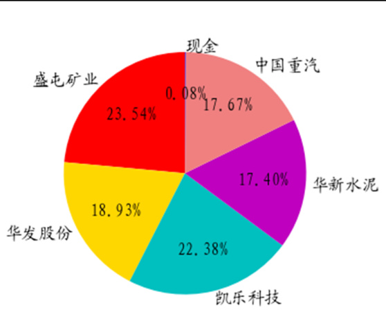 - 市值占比最高为盛屯矿业23.54%,其次为凯乐科技22.38%,华发股份和中国重汽市值均在17%左右。