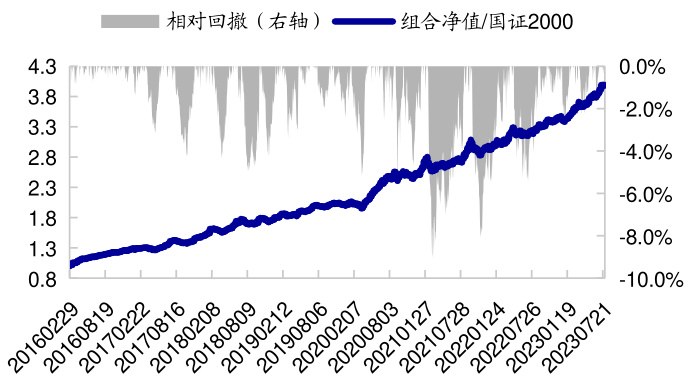 图1 国证2000指数增强策略相对净值走势(2016.03-2023.07)