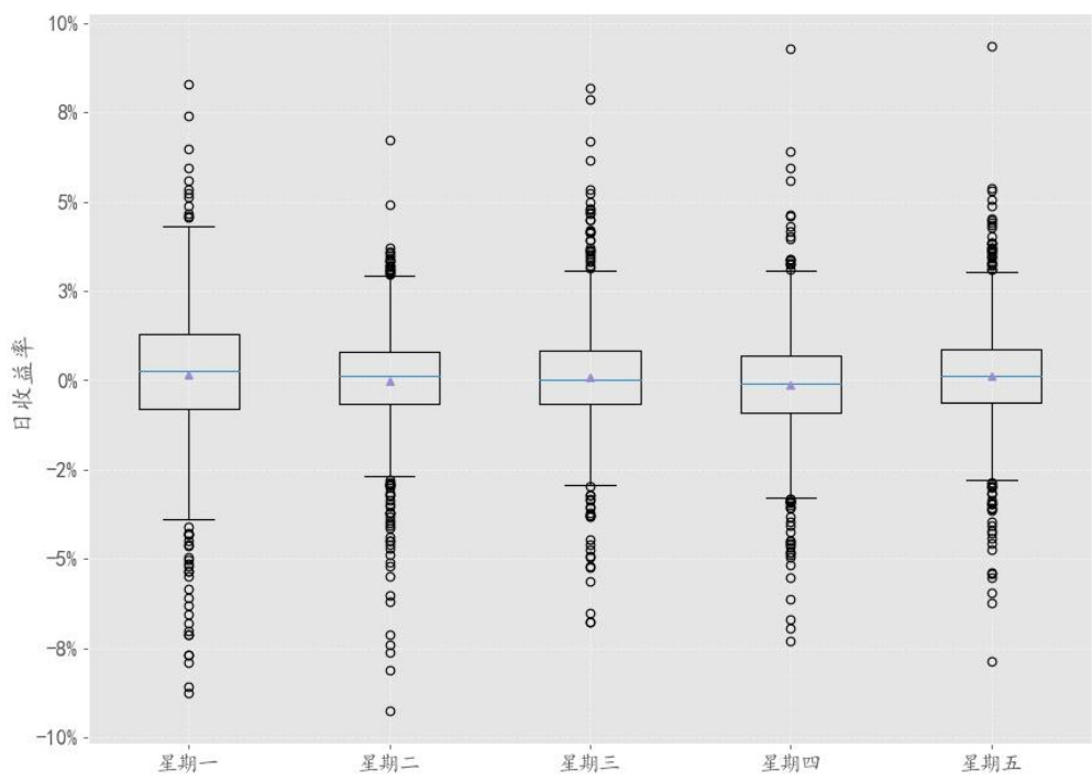 沪深300指数周内效应箱线图(按均线划分市场状态)[page::46]: