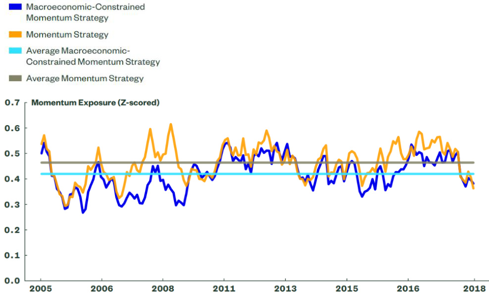 - 解读: 有宏观风险限制的策略动量因子暴露较低,但综合表现在风险调整后的回报上更优,体现了权衡取舍下的合理优化。