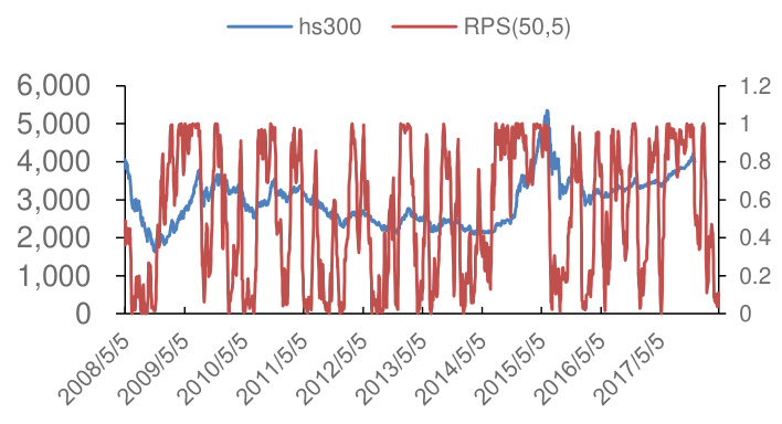 - RPS与沪深300的收益率变化同步性较好,适合捕捉市场状态变换。