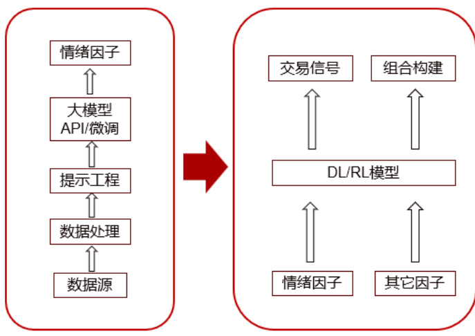 - 表述大语言模型通过情绪因子处理,支持基于深度学习和强化学习的量化投资决策。