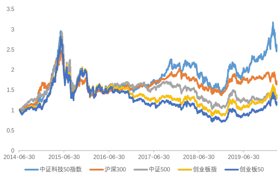 - 中证科技50指数自2014年以来表现显著优于沪深300及创业板50。