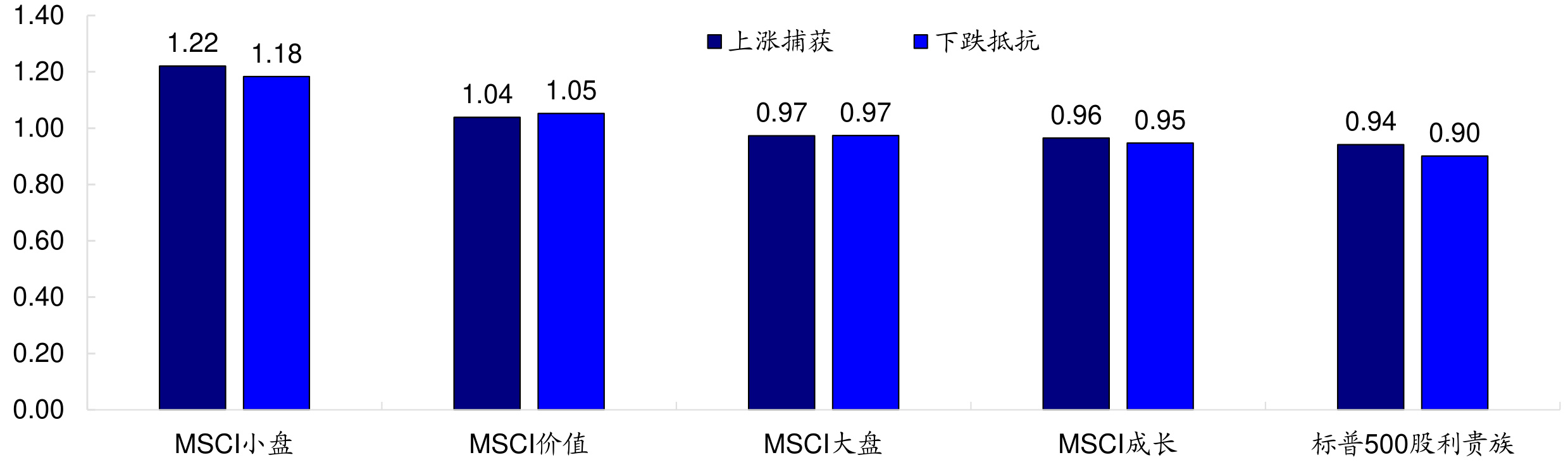 - 图示各风格上涨下跌能力,为投资策略提供风格矩阵判断依据。