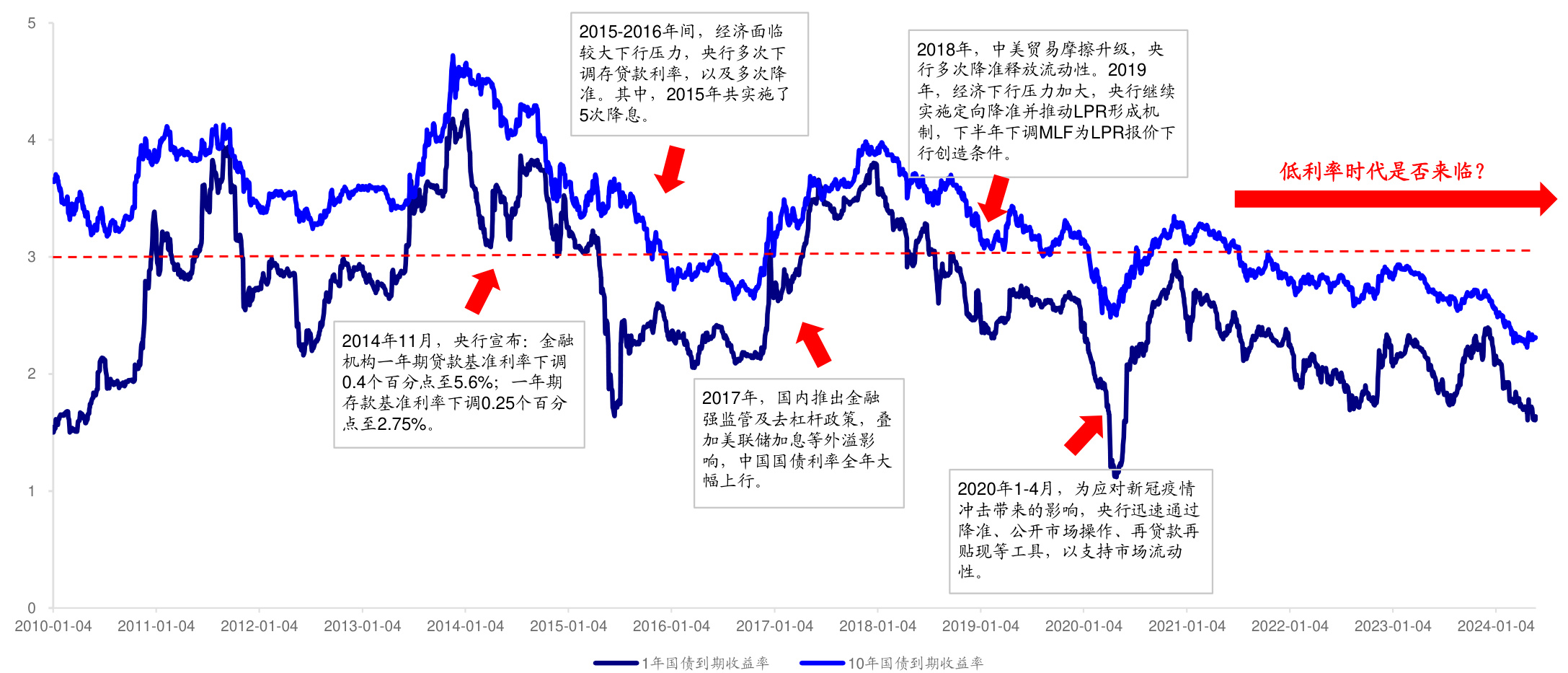 - 直观呈现是否进入“低利率时代”的核心疑问背景。
