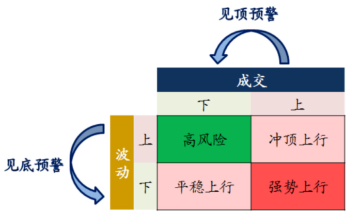 - 利用波动率和成交额方向划分情绪四象限,构建带有见底与见顶预警功能的情绪指数。