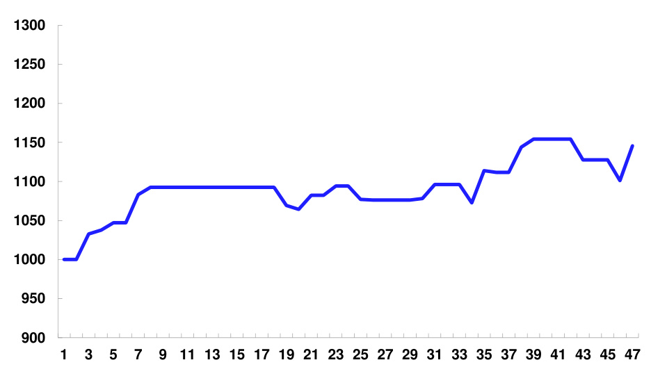 | 2011 | 51 | 31 | 60.78 | 2.10 | -2.00 | 1.04 |