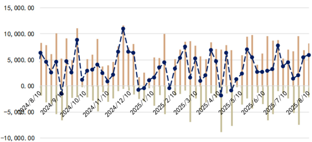 - 解读:可见大量波动,常出现净回笼与净投放交替,近期净回笼持续且幅度适中,反映央行为调节流动性采取灵活操作。