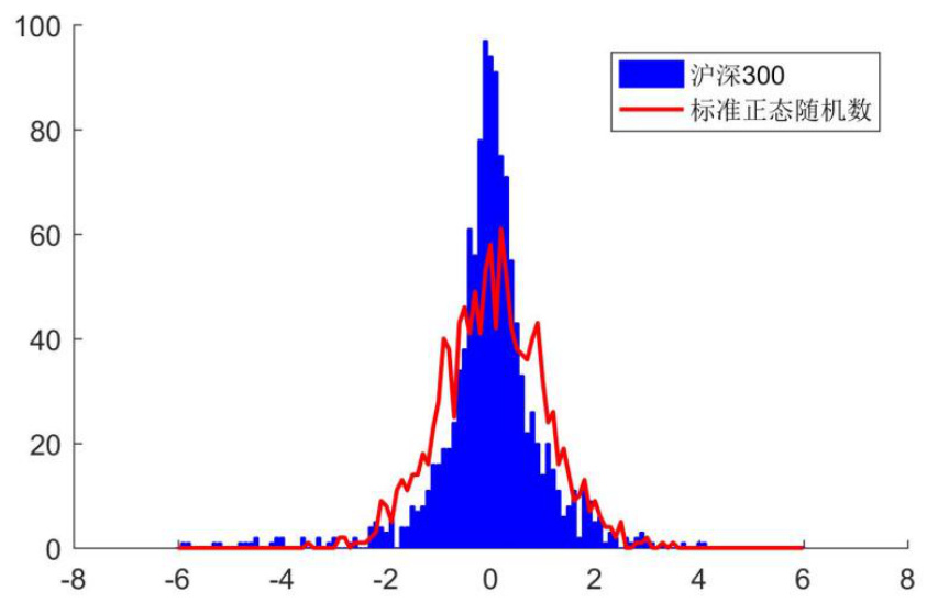 - 图4:沪深300日收益率标准化分布与标准正态随机数对比