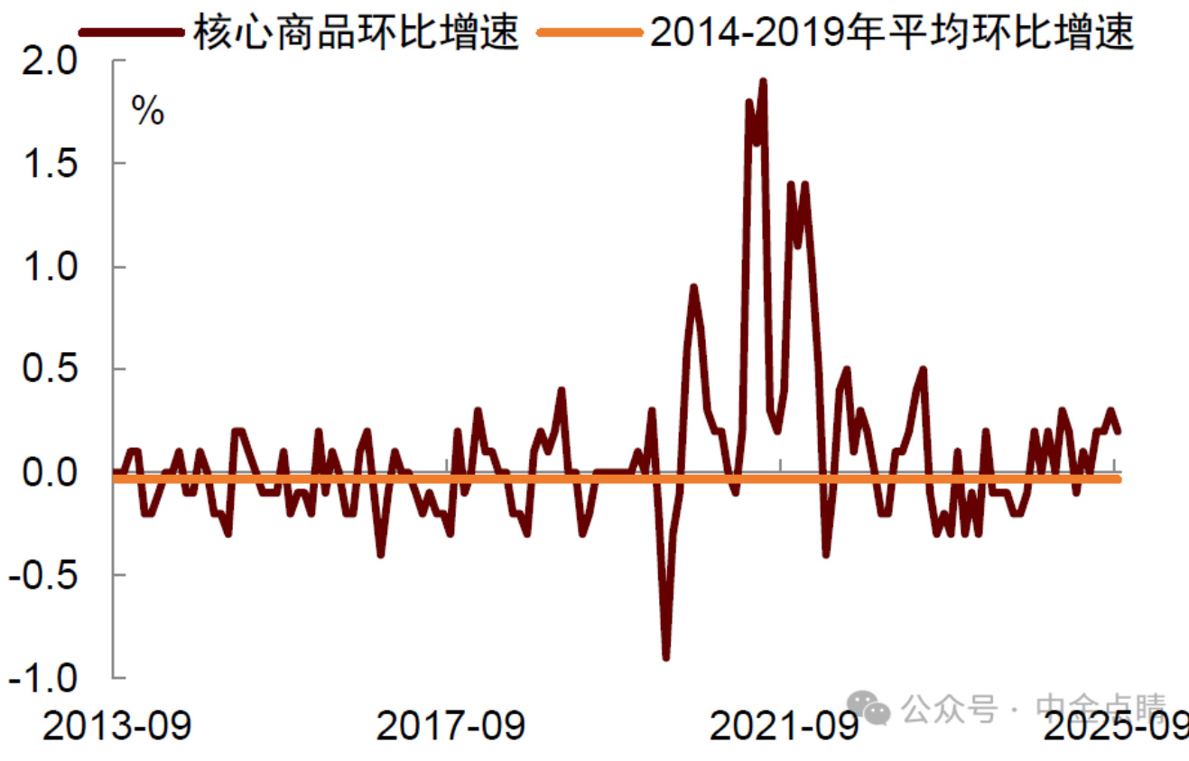 - 核心商品环比涨幅从0.3% 回落至0.2%。