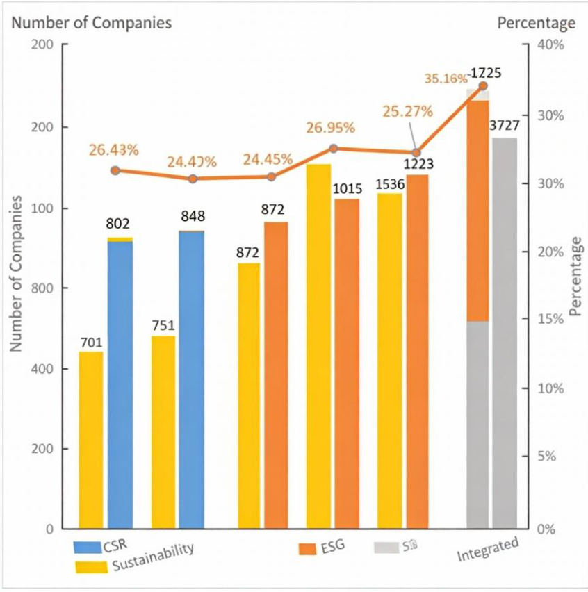 描述:A股披露ESG/CSR/SD报告数量与披露率(2015:751→2022:1725;披露率2022升至35.16%)[page::52][page::53]。