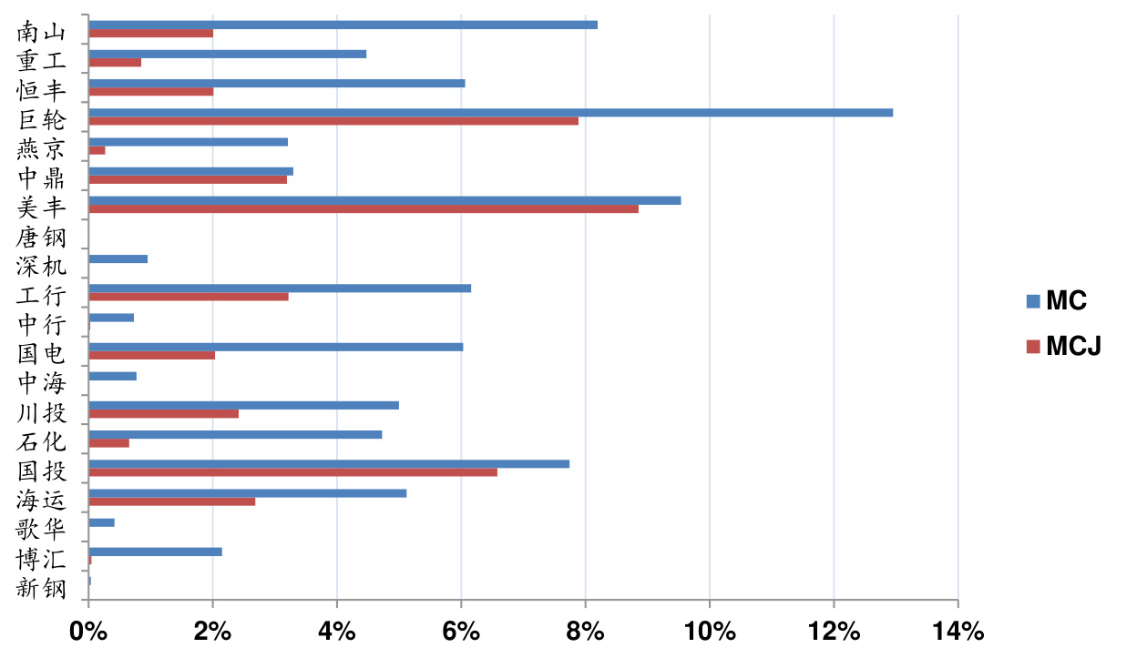 - 通过柱形图对比MC、MCJ理论估值及实际收盘价分布