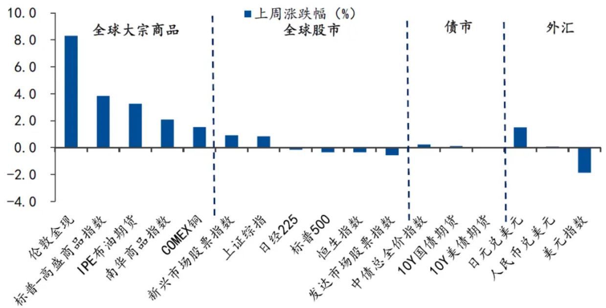 上周各类资产表现:大宗商品与贵金属强势、风险资产分化 [page::3]