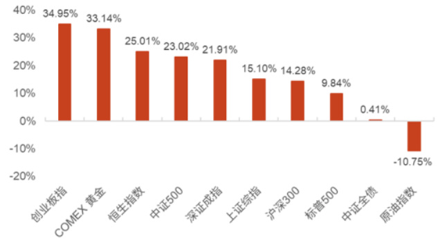 - 今年以来创业板、黄金、恒生指数涨幅明显。