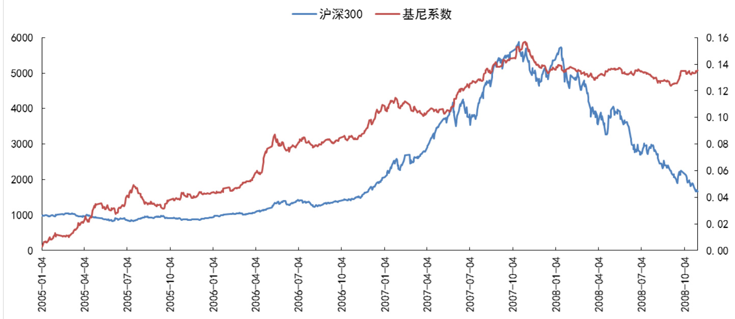 - 熊市阶段基尼系数下降,收益差距缩小,呈现共同回落状态。