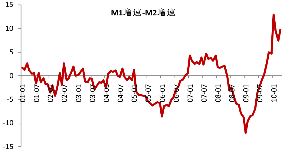 - 图4显示M1与M2增速差的历史波动,当前处于较高水平,有收窄的趋势。