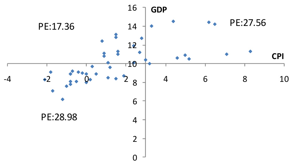 - 图2:GDP-CPI二维空间下的平均PE水平分布