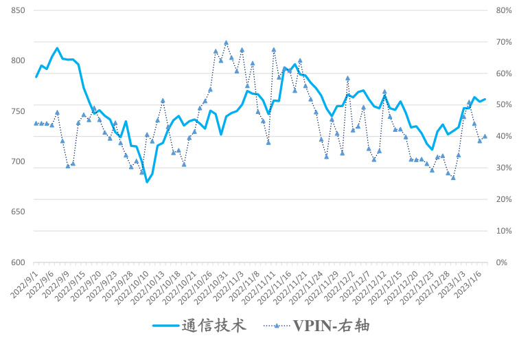 VPIN指标的阶段性上升与价格走势配合,结合因子的有效性变化,证明收益增强策略在通信技术主题内的成功应用。