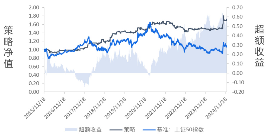 - 策略自2017年起在上证50年化收益9.08%,最大回撤低,超额收益持续显著。