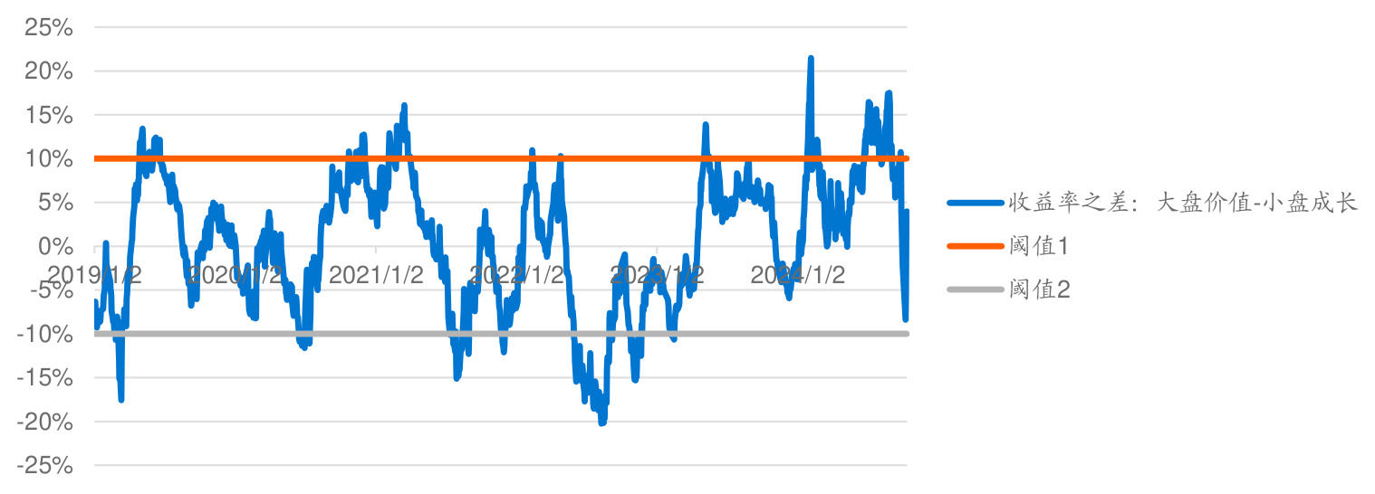 - 收益率差急剧回落,从近10%的正值迅速跌至负值,体现风格切换明显。