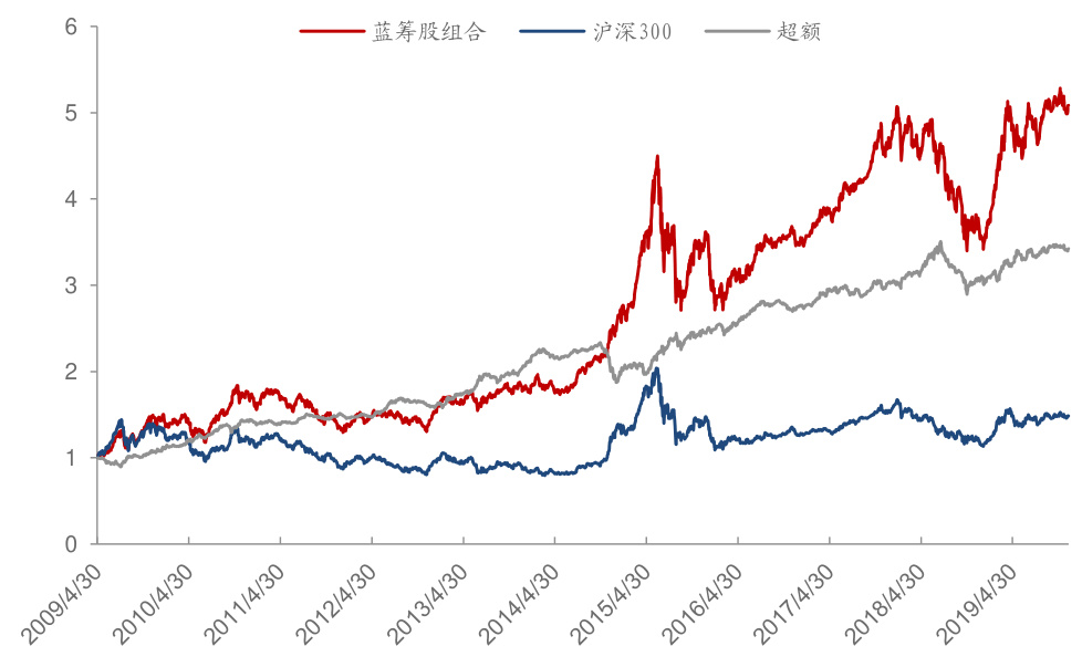 图7:蓝筹股组合净值及沪深300净值(2009.5-2019.12.10)