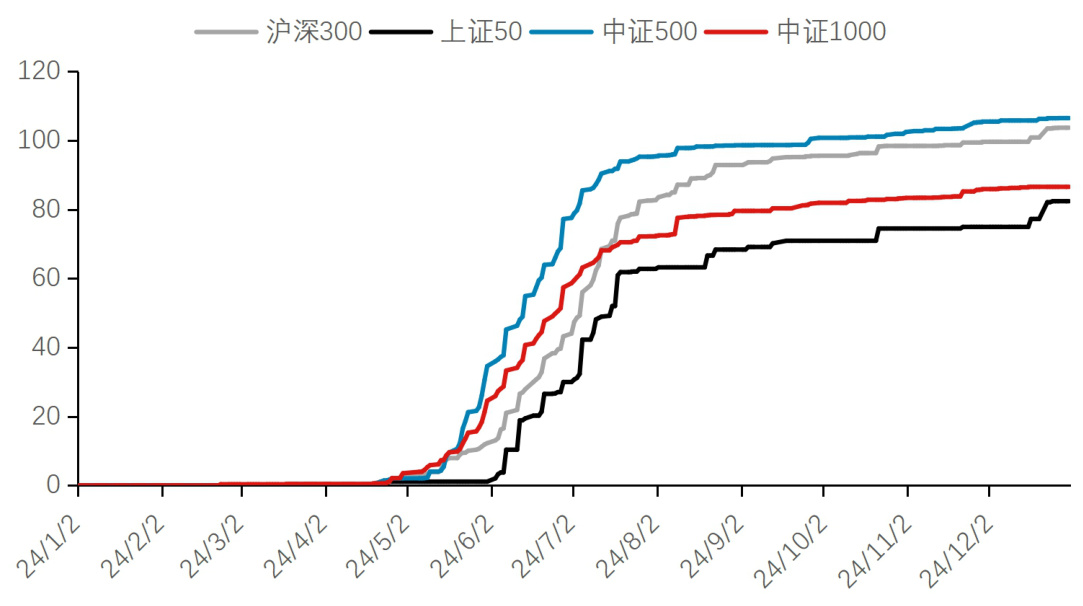 | 中证1000 | 24.55 | 0.46% | 61.99 | 1.16% | 86.54 | 1.62% |