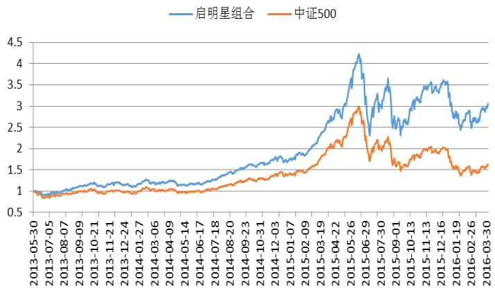 - 从2013年5月至2016年4月的历史回测中,启明星组合累计超额收益达143%,年化收益率49.5%,基准为19.2%。