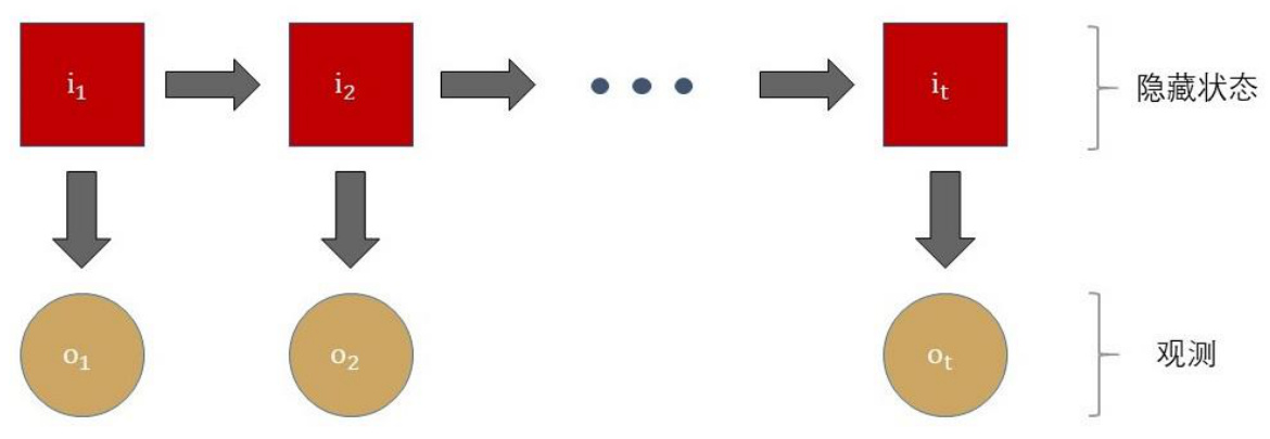 介绍隐马尔可夫模型(HMM)的定义与构成,其是包含隐藏状态序列和可观测序列的双层随机过程。模型用初始概率向量π,状态转移概率矩阵A,和观测发射概率矩阵B表征系统,隐含的马尔科夫性质假定隐藏状态的转移服从一阶马尔科夫过程,且当前观测值只依赖当前隐藏状态。
