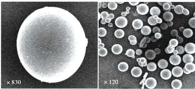 描述:微胶囊形态及分布的扫描电镜图像,显示大小均一且结构完整。