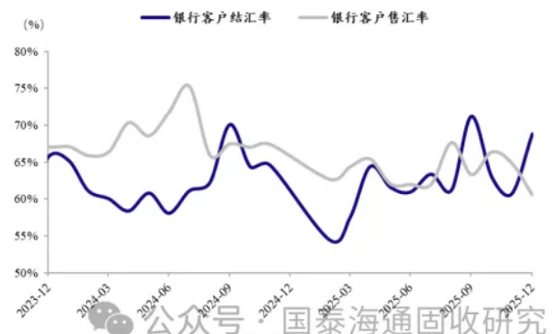 曲线显示2025年末结汇率持续抬升并高于多数历史时点,购汇率相对走低,支持“结汇行为强化”的陈述。[page::1]