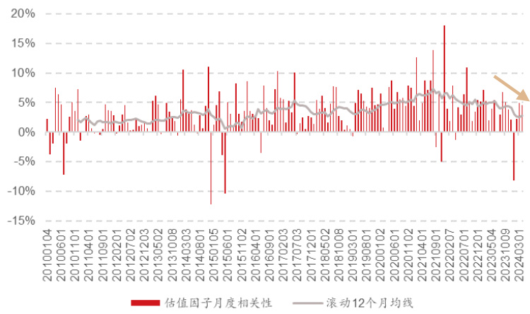 - 图2. 估值因子月度相关性趋势(2010—2024)