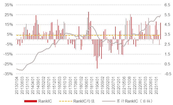 - 整合因子的长期RankIC均值为5.53%,年化RankICIR1.09,胜率72.59%,多空年化收益4.71%,预测性能优于单独因子(表1,图29-30)。