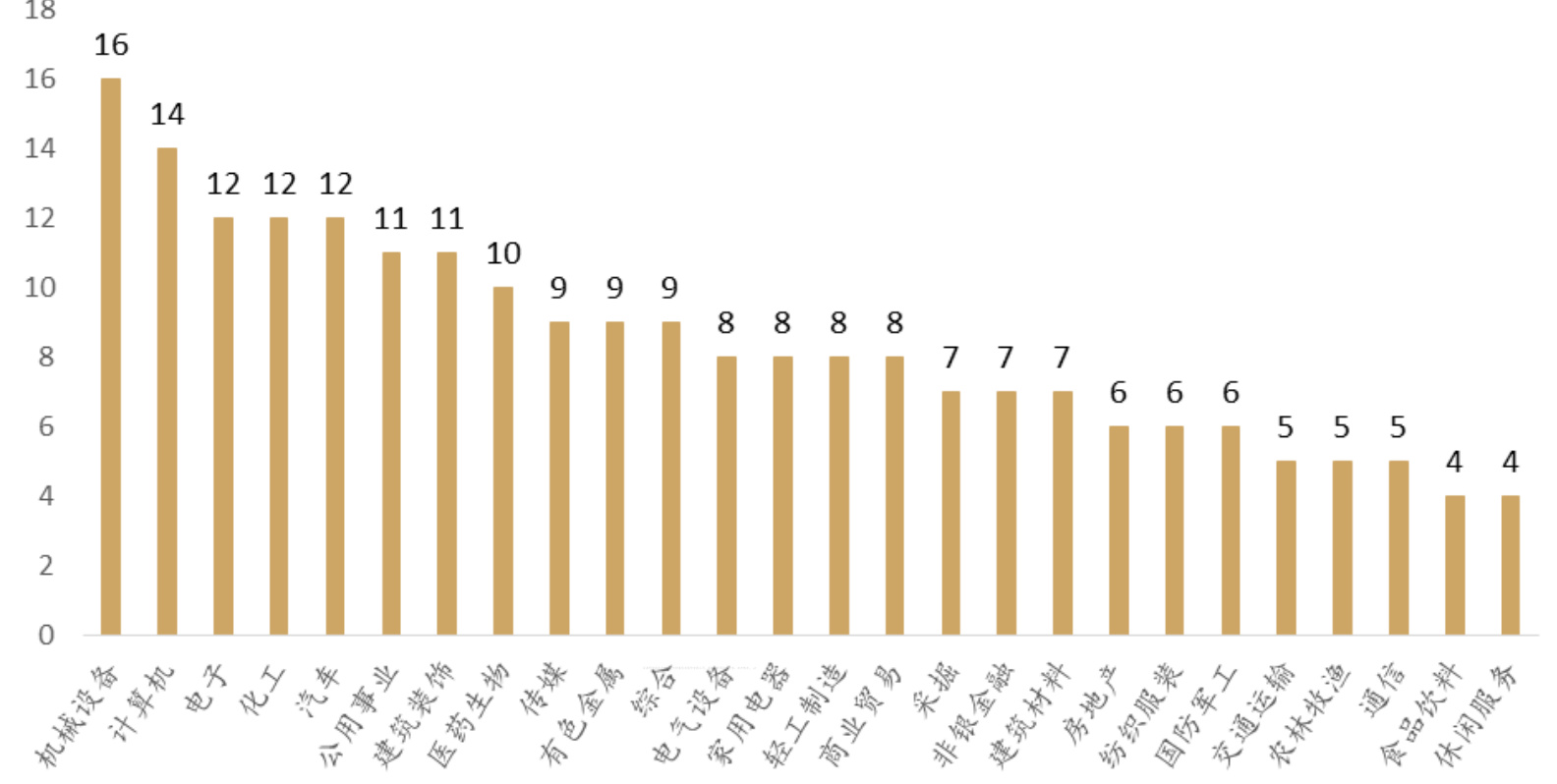 - 统计新行业分类中公司数量分布,数据显示相比申万与中信二级行业,新行业分类各行业成分公司数量更加均衡。