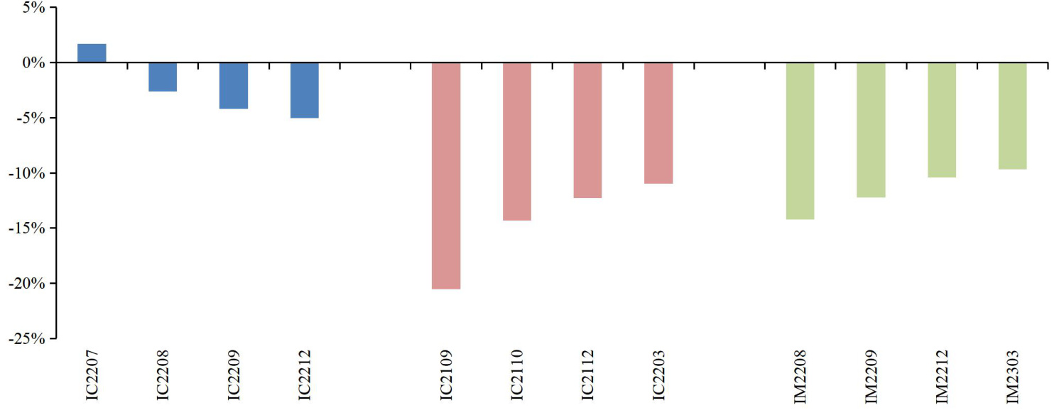 - IM合约贴水最深,深度比IC约多5%-6%。