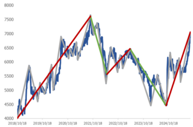 通过与历史六次下行周期对比,表明当前下行阶段达到历史最低并逐渐回升,突显经济复苏信号,有助于支撑股市中长期表现。
