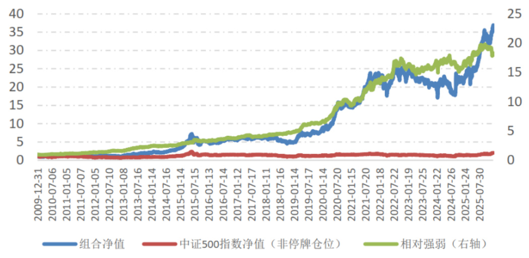 - 表格与图像证据:图表1显示自2009年底至2025年该策略组合净值显著跑赢基准(中证500净值)并体现较高的相对强弱值;年度表格列出各年绝对收益、超额、回撤等(例如2013年绝对收益75.63%、超额57.71%)并给出全样本年化绝对收益25.30%、超额20.71%[page::3]。