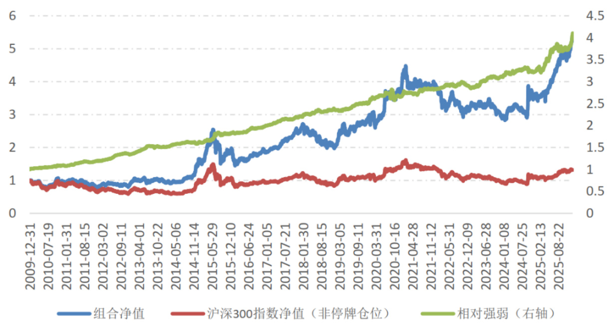 - 图表证据:图表5/6显示组合净值长期优于沪深300,并列出历年绝对与超额收益(如2025年绝对收益38.58%、超额20.92%),全样本超额9.34%[page::5]。