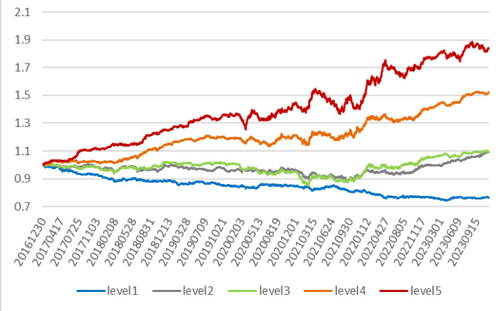- 图表解读: 多空组合净值稳步增长,分层区分明显。