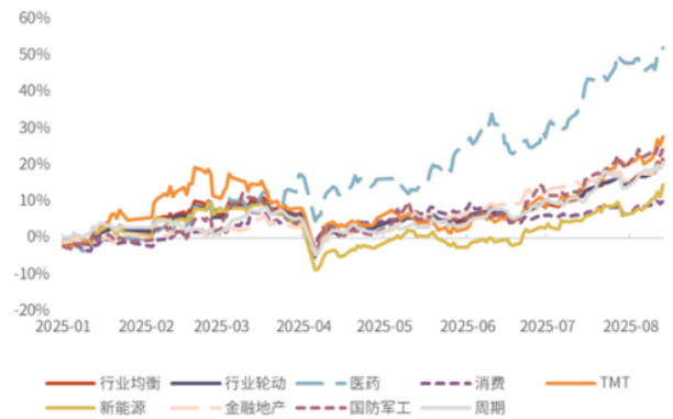 - 图7体现各主题基金指数走势,TMT明显跑赢市场,新能源、医药等也呈稳健上涨。